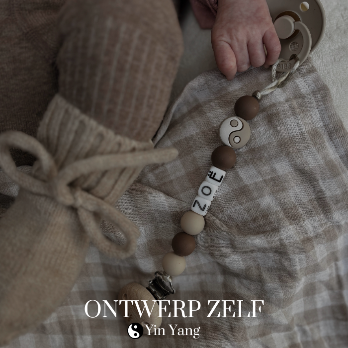 Ontwerp nu jouw speenkoord beige met YIN YANG kies uit twee kleuren.