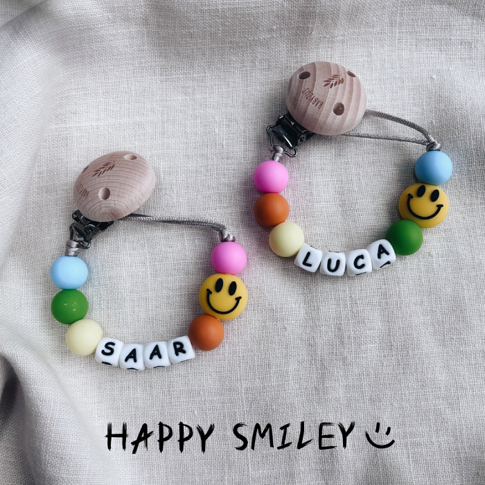 Speenkoord met naam HAPPY SMILEY RAINBOW